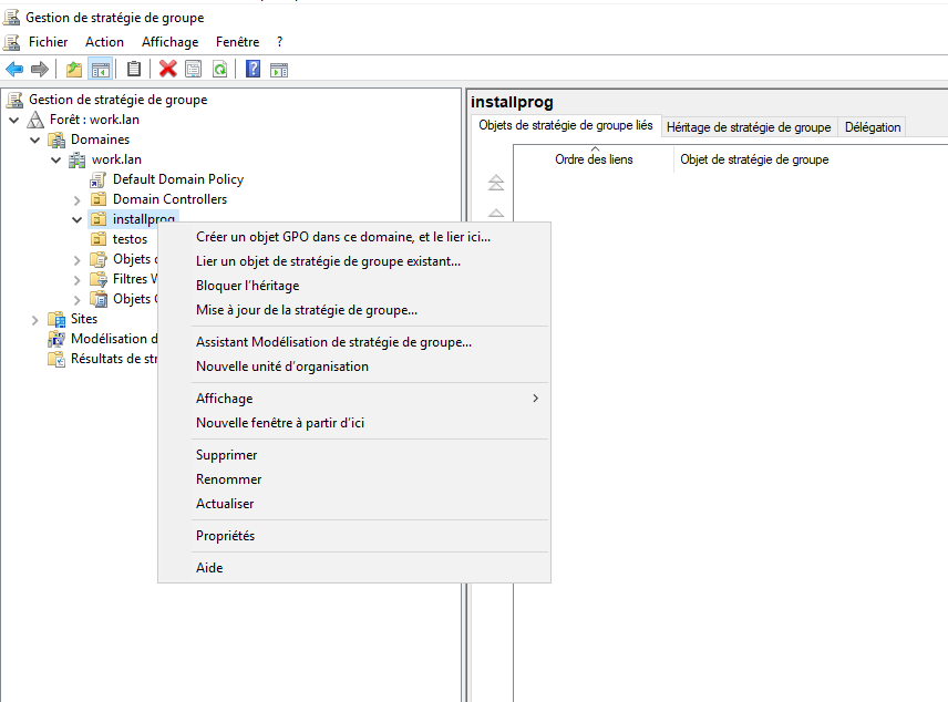 Dans Gestion de stratégies de groupe, faites un clic droit sur l’unité d’organisation en question et sélectionné Créer un objet GPO dans ce domaine et le lier ici.