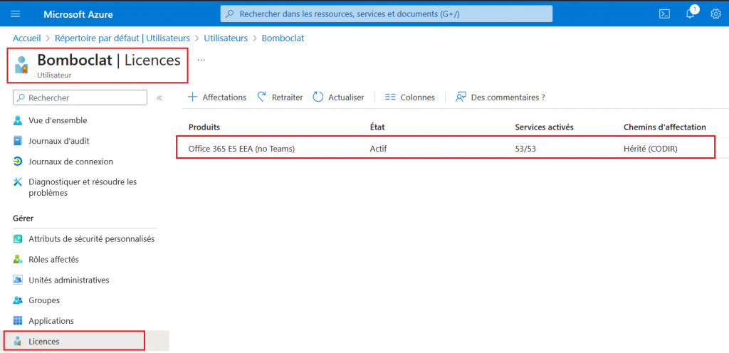 De retour dans Microsoft Entra ID sur le portail Azure, vous allez vous en apercevoir la présence des licences.