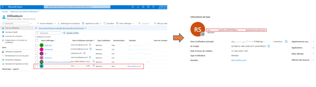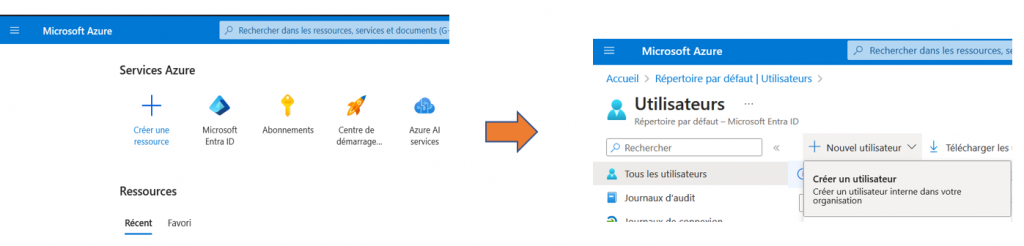 Ce compte permet de synchroniser les identités entre un Active Directory local et Microsoft ENTRA ID. Ce processus garantit que les utilisateurs, groupes et autres objets de votre AD local sont automatiquement reflétés dans Azure AD. Pour cela, rendez-vous sur « Microsoft ENTRA ID >> Utilisateurs >> Tous les utilisateurs », puis cliquez sur « Nouvel utilisateur >> Créer un utilisateur ».