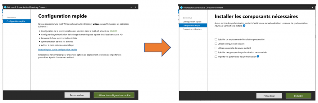 AD Connect est l’outil essentiel qui permet, une fois installé et configuré, d’assurer la synchronisation des comptes d’utilisateurs, groupes et objets de notre Active Directory local avec Microsoft Entra ID (Azure Active Directory). Pour cela, rendez-vous sur la page de téléchargement d’Azure AD Connect, puis cliquez sur « Download ». Une fois le fichier d’installation téléchargé, exécutez-le, choisissez l’installation personnalisée en cliquant sur « Personnaliser », puis sur « Installer ».