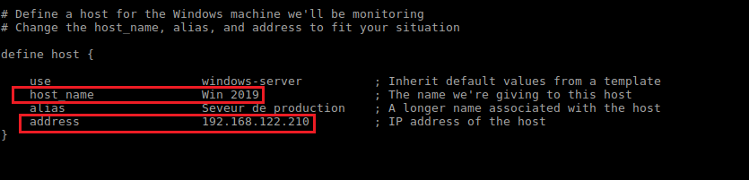 Ouvrez le fichier et entrez le nom et l’adresse du serveur à monitorer comme ceci :