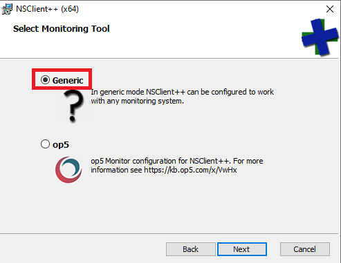 Téléchargez la dernière version de l’agent et lancez l’exécutable. Sélectionnez Generic et faites Next.