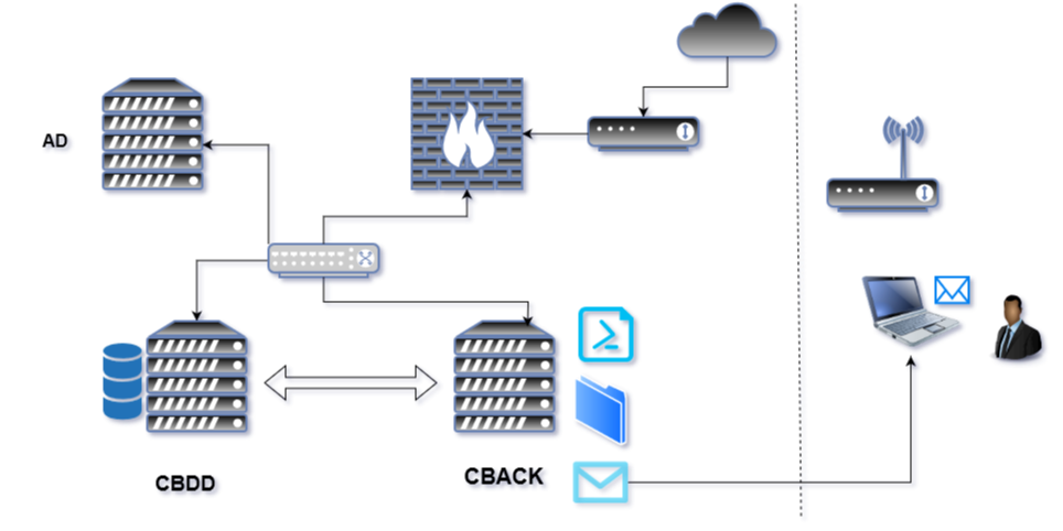 Nous disposons de deux serveurs sous Windows Server 2019 : l’un pour le système de gestion de base de données (SGBD) et l’autre pour les sauvegardes, les deux étant membres d’un même domaine. Le serveur de sauvegarde, nommé CBACK, exécute quotidiennement un script PowerShell. Ce script, une fois lancé, effectue une sauvegarde d’une base de données MySQL appelée « produits_db », qui se trouve dans le serveur « CBDD », et stocke la sauvegarde dans le répertoire C:\backmysql sur CBACK avec le nom de la base accompagné de la date du jour et l’heure à laquelle la sauvegarde est effectuée. Une fois l’opération terminée, un mail est envoyé automatiquement à l’administrateur système pour lui notifier le déroulement de l’opération. Cette notification informera l’administrateur de la réussite ou de l’échec de la sauvegarde.