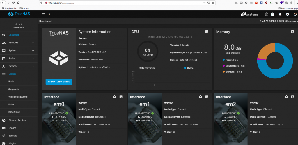 TrueNas redémarré, la première chose à faire c’est d’attribuer des adresses statiques aux interfaces réseau.