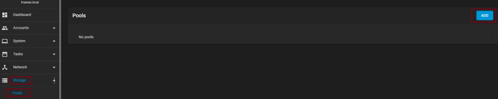Sur la page ouverte, cliquez sur add, ensuite sélectionnez l’option Create new pool puis faites Create pool.