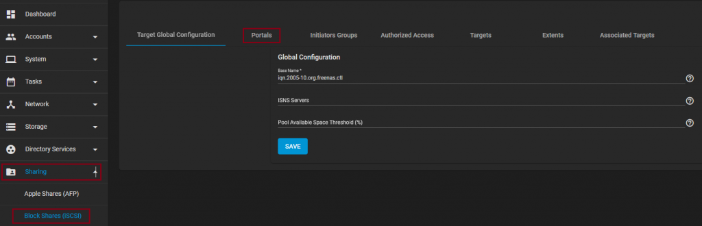 Le pool créé, passons à la création et à la configuration du partage de celui-ci. À cet effet, rendez-vous sur Sharing –> Block Shares (ISCSI).