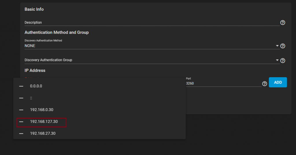 Sur la page ouverte ce qui nous intéresse c’est de renseigner les adresses des interfaces avec lesquelles les hôtes ESXI vont emprunter pour communiquer avec le pool de stockage nouvellement créé.