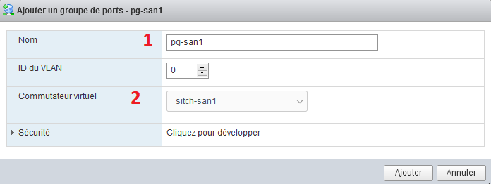 Cliquez sur ajouter Des groupes de ports, donnez-lui un nom, choisissez le switch qui va lui être lié, puis faites ajouter.
