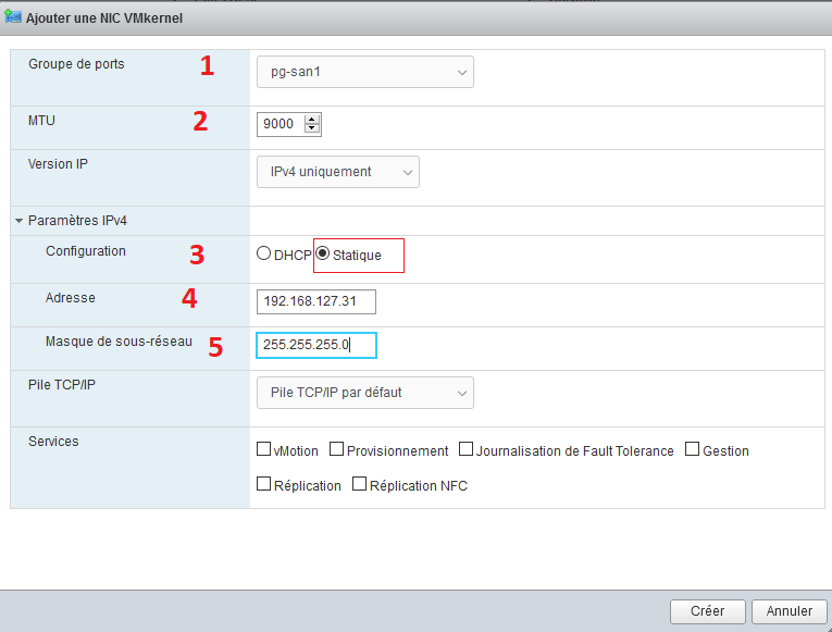 - Les deux seront dédiées au réseau de stockage 192.168.127.0/24 et 192.168.27.0/24 (la communication entre les hôtes ESXI et le serveur de stockage seront en Host-Only).