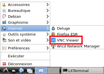 Pour entamer la configuration de VNC Server, rendez-vous sur start –> internet –> VNC Server pour lancer VNC.