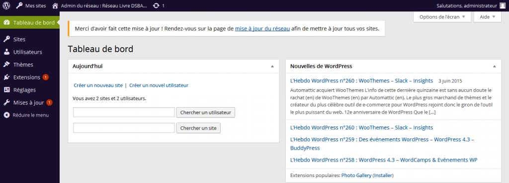 Avant d’entamer l’ajout d’un nouveau site, découvrons d’abord ensemble de l’espace d’administration ainsi que la configuration d’un réseau multisites.